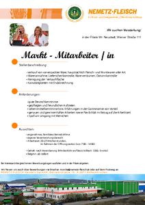 Bewerben Sie sich noch heute bei Frau Monika Nemetz Roither unter monika@nemetz-fleisch.at